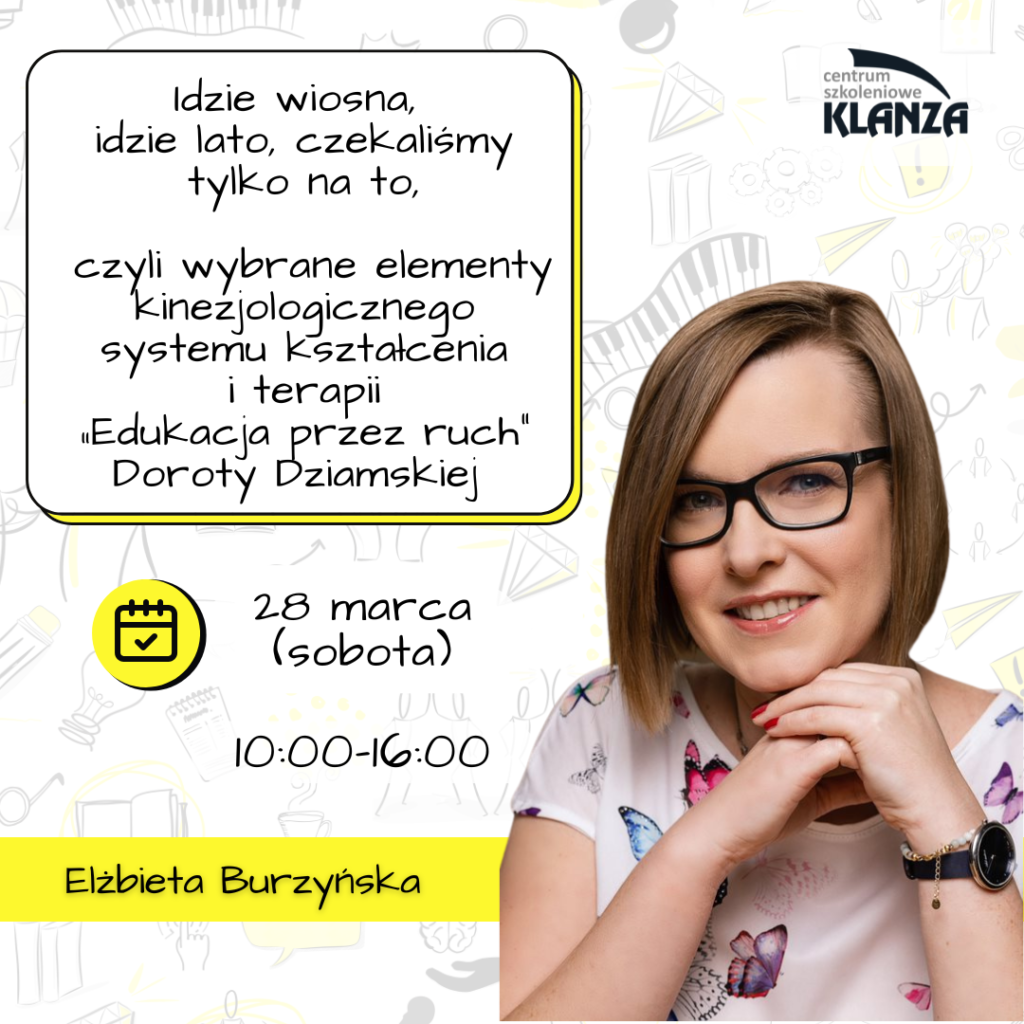 Warsztaty metodyczne: Idzie wiosna, idzie lato, czekaliśmy tylko na to, czyli wybrane elementy kinezjologicznego systemu kształcenia i terapii „Edukacja przez ruch” Doroty Dziamskiej (8h)
